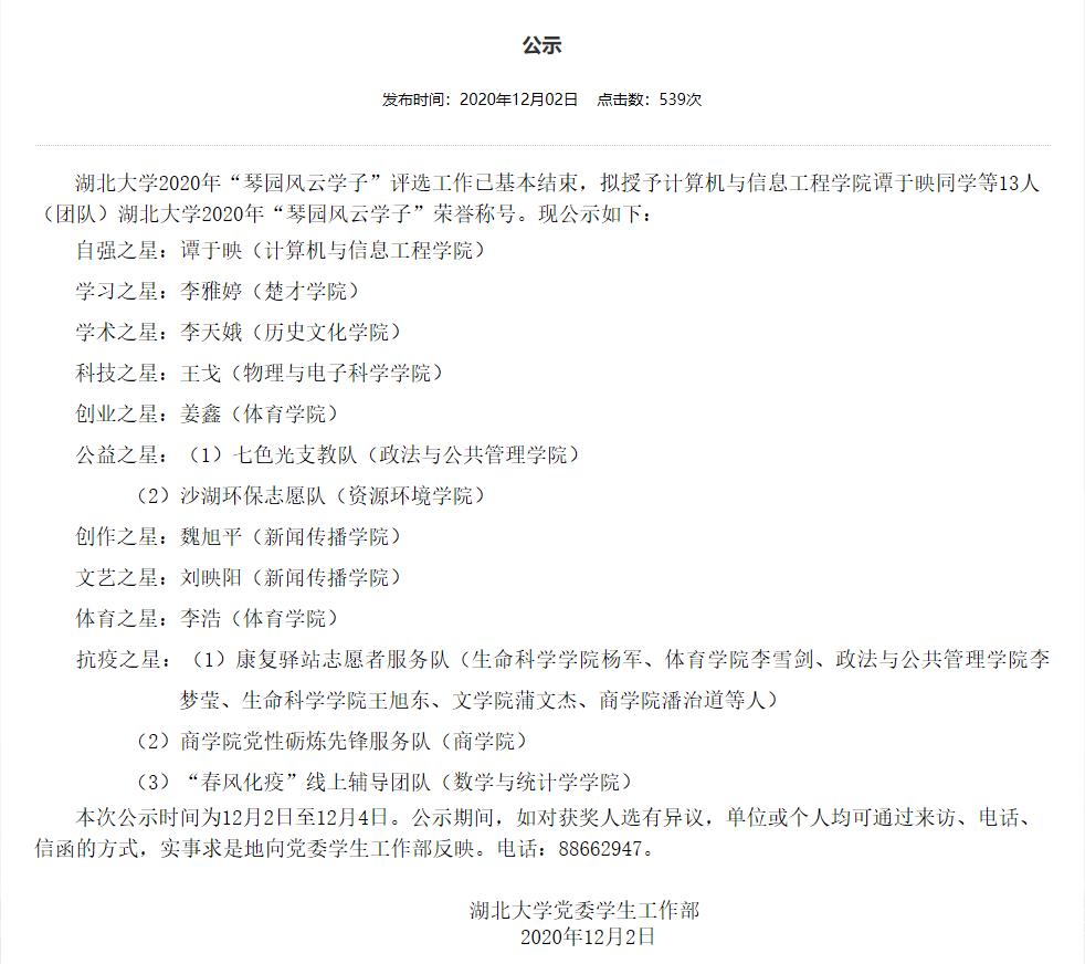 根据《关于开展威廉希尔2020年“琴园风云学子”评选活动的通知》精神,公司组织开展了2020年“琴园风云学子”评选活动。经员工报名、公司评审、网络公示等环节,公司谭于映荣获威廉希尔2020年“自强之星”。