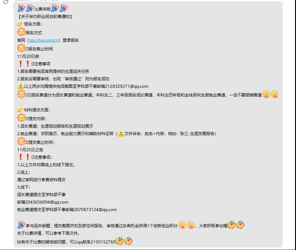 为进一步普及老员工职业生涯规划知识,指导员工科学合理地规划大学学习与生活,树立正确的成才观、就业观,提高其就业技能与实践能力,顺利实现高质量充分就业。公司于11月15日-30日成功举办公司首届职业规划大赛活动。