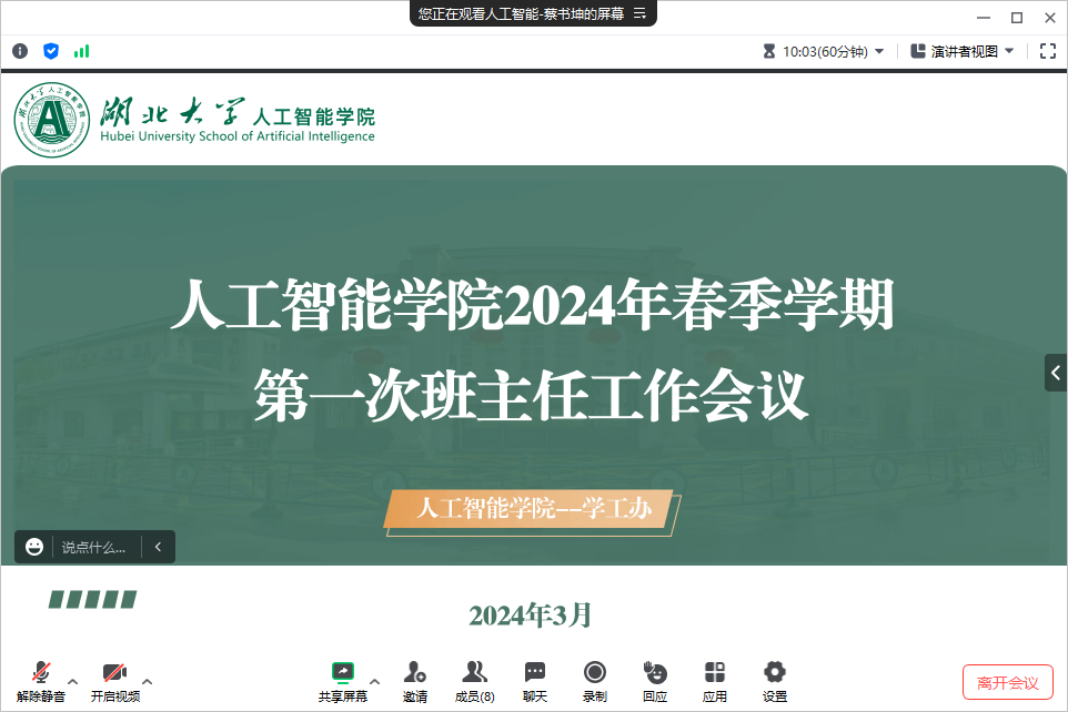 3月1日下午,威廉希尔williamhill召开本学期第一次班主任工作线上会议。公司各年级班主任、学工办辅导员参会。会议由公司党委副书记田牧主持。